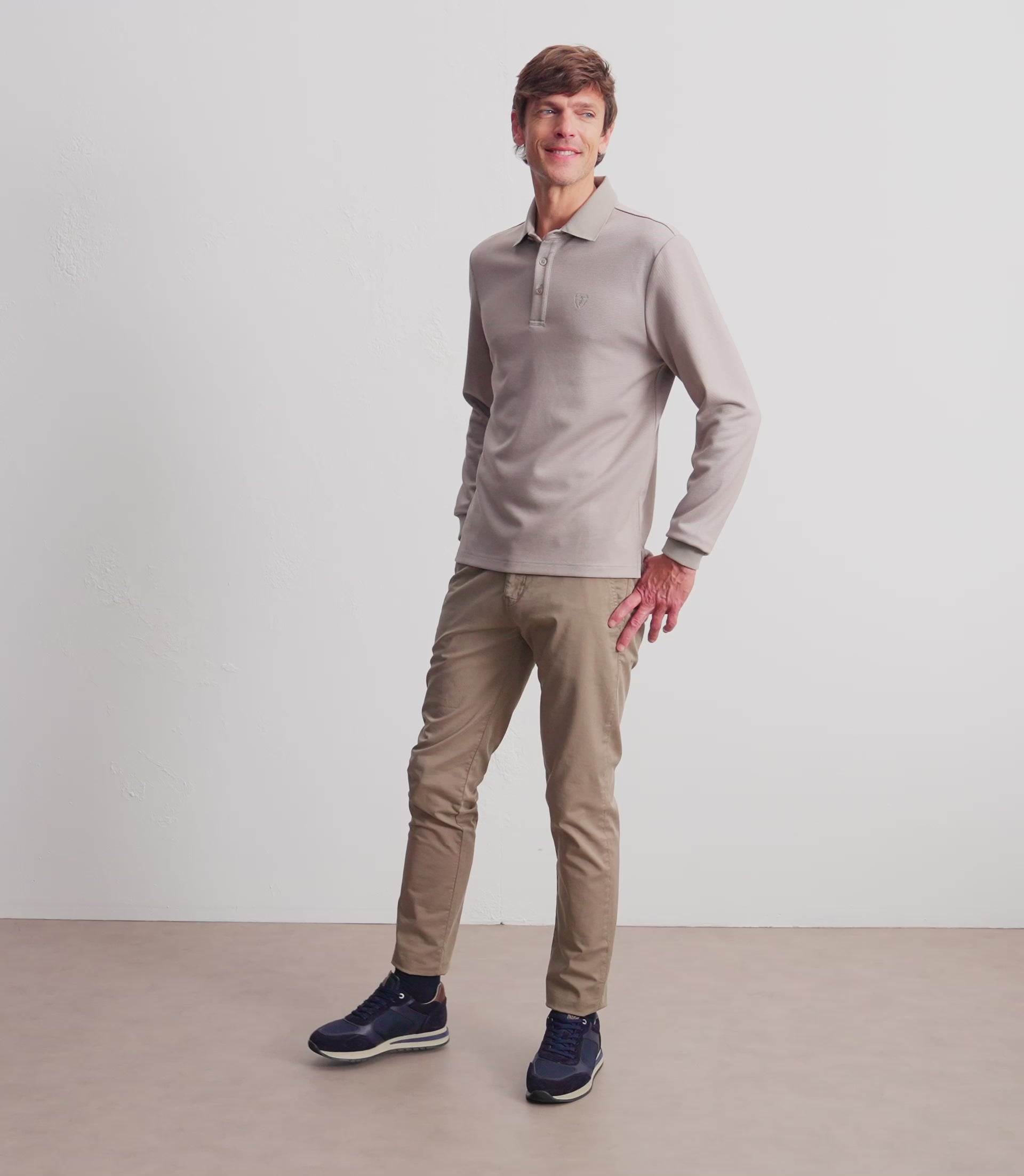 GARLONG long-sleeved open-neck polo shirt beige - IZAC