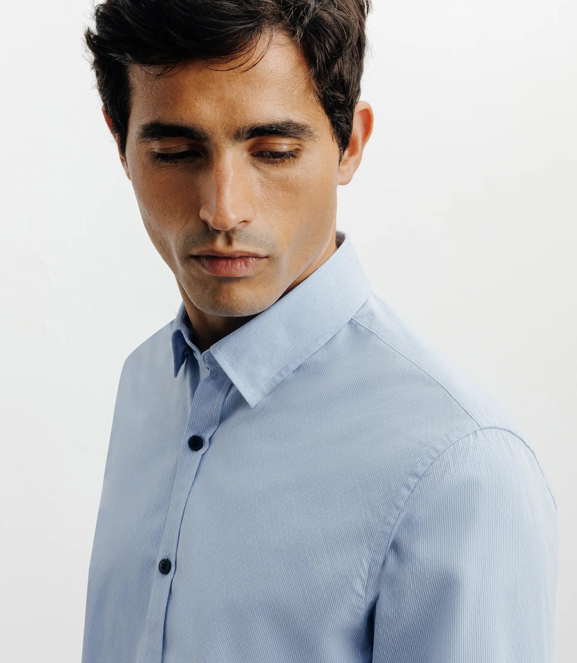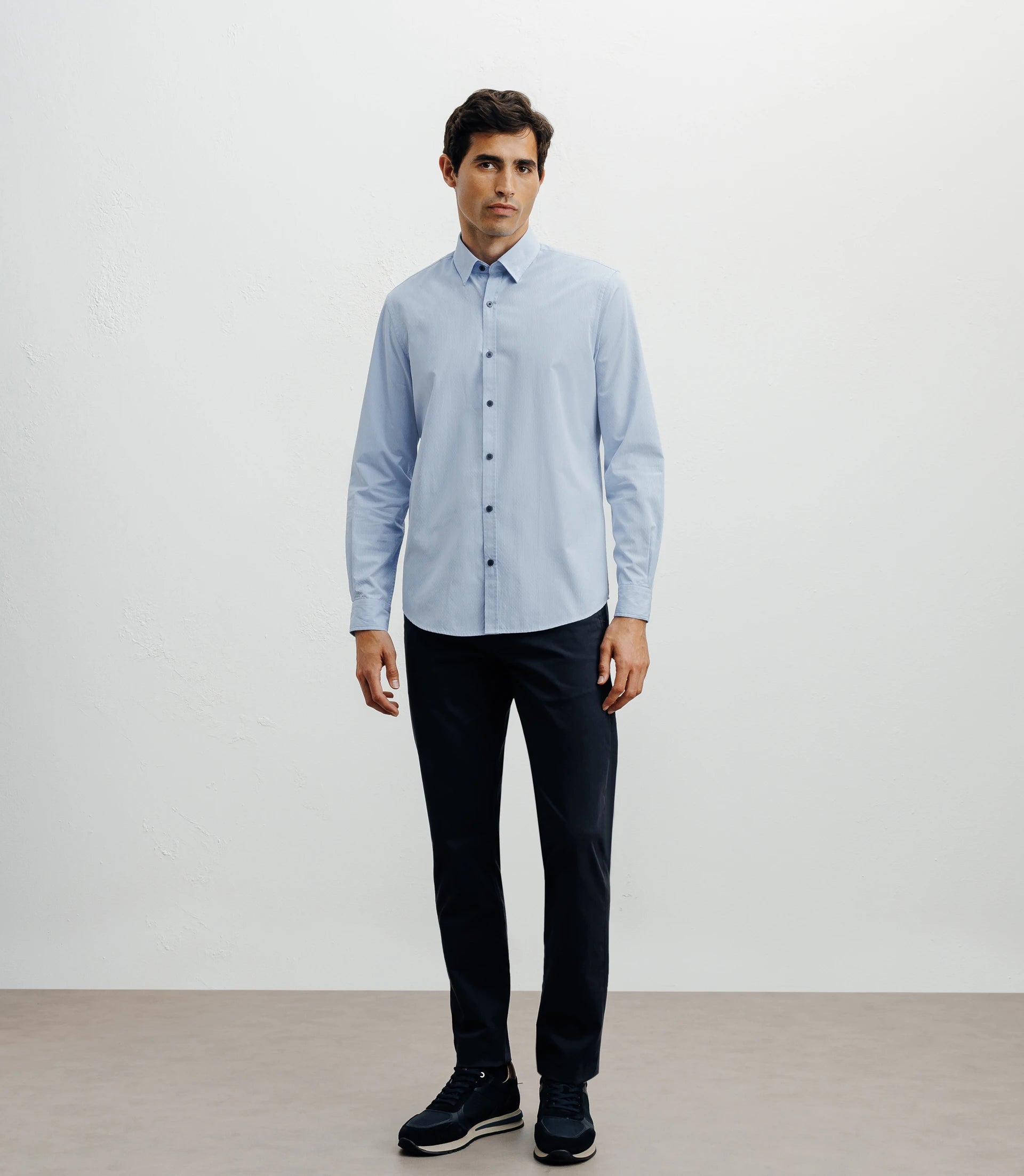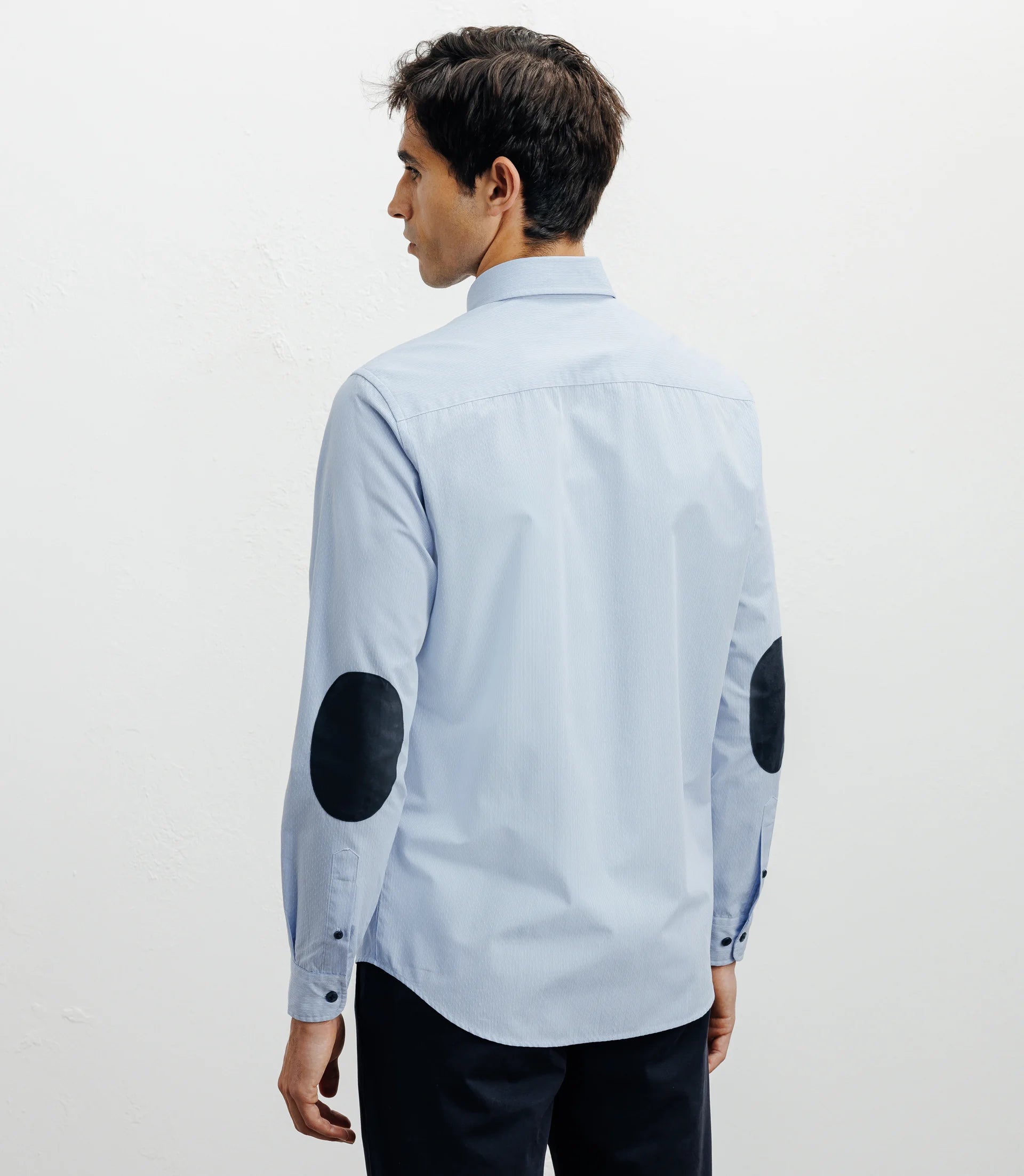 Blue casual shirt with navy suede elbow patches MAXIME - IZAC