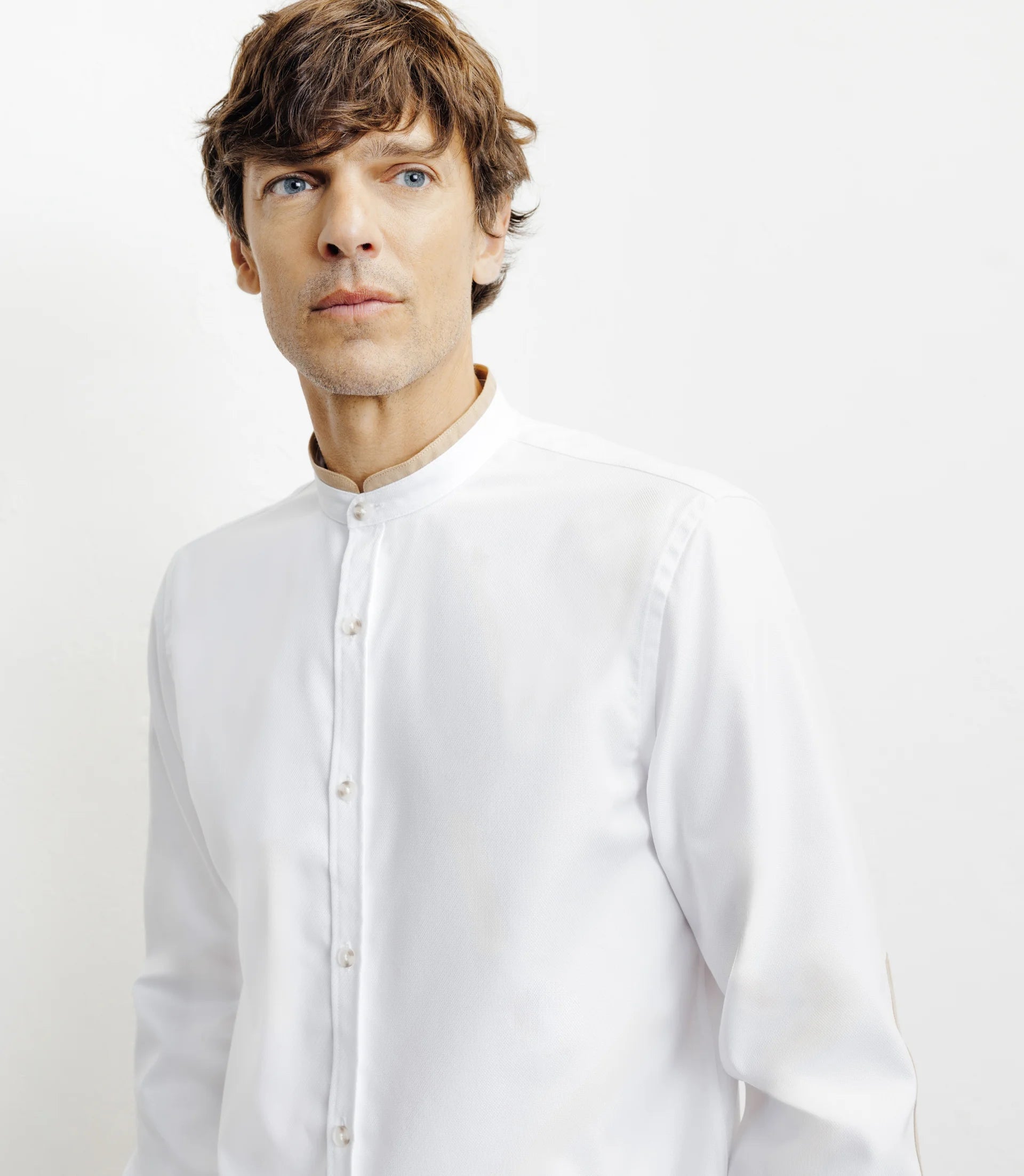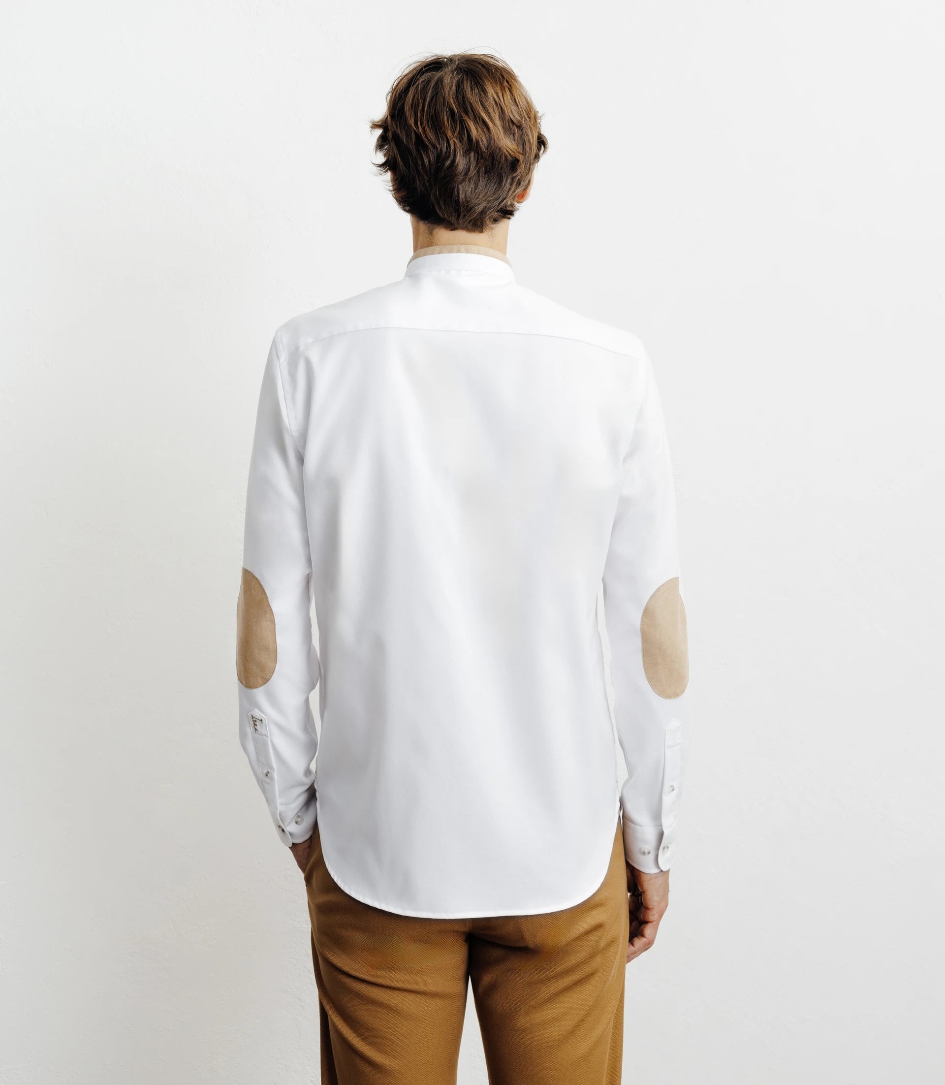 White casual shirt with mao collar and suede elbow patches MATOU - IZAC