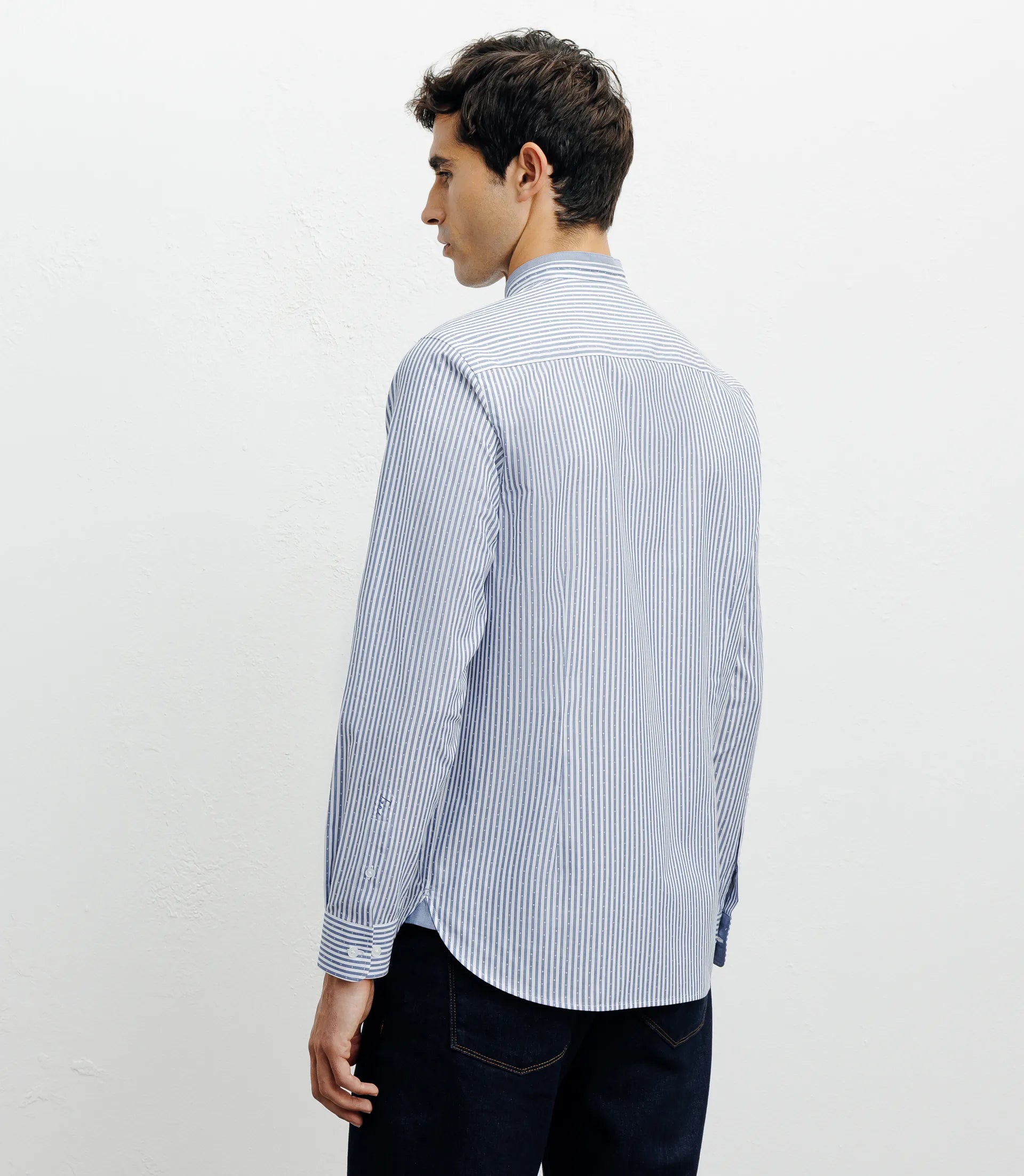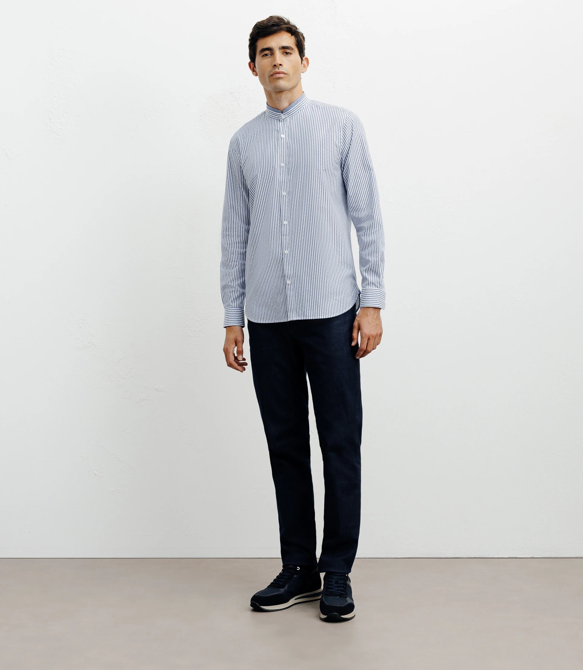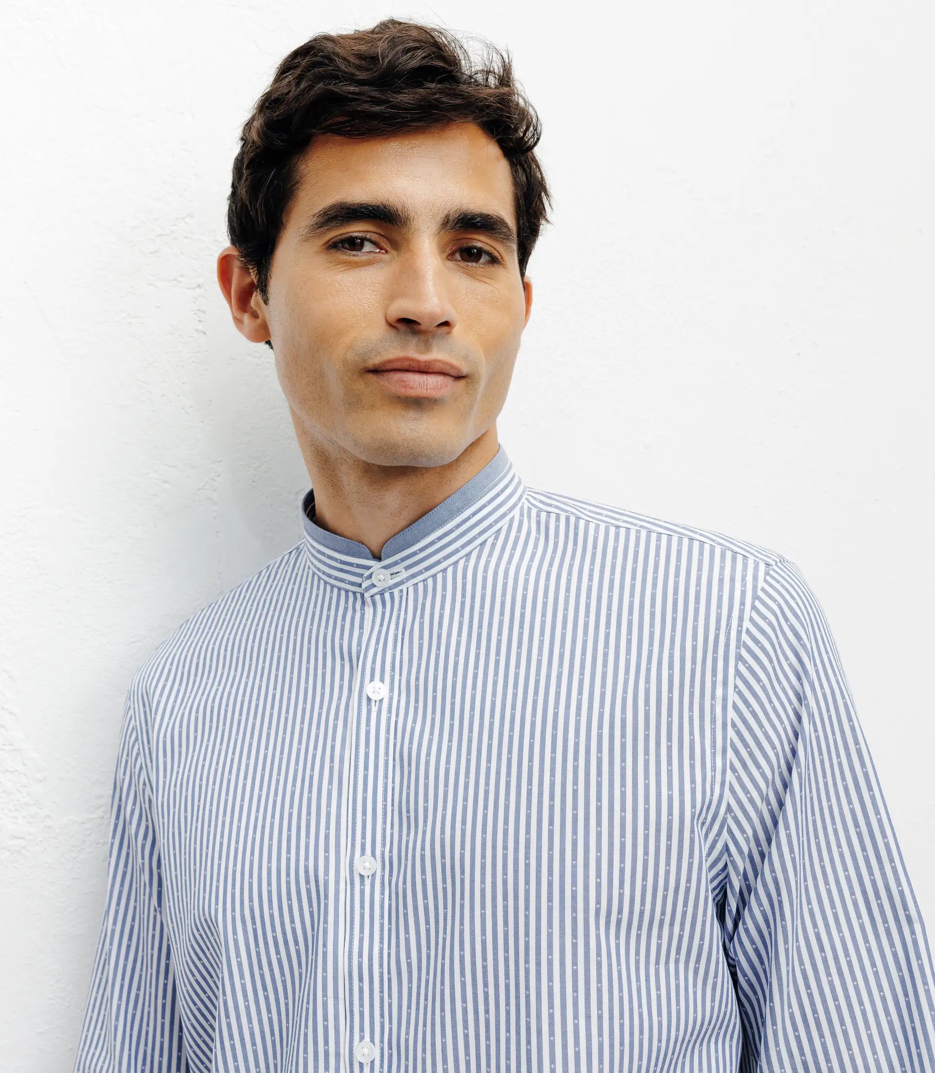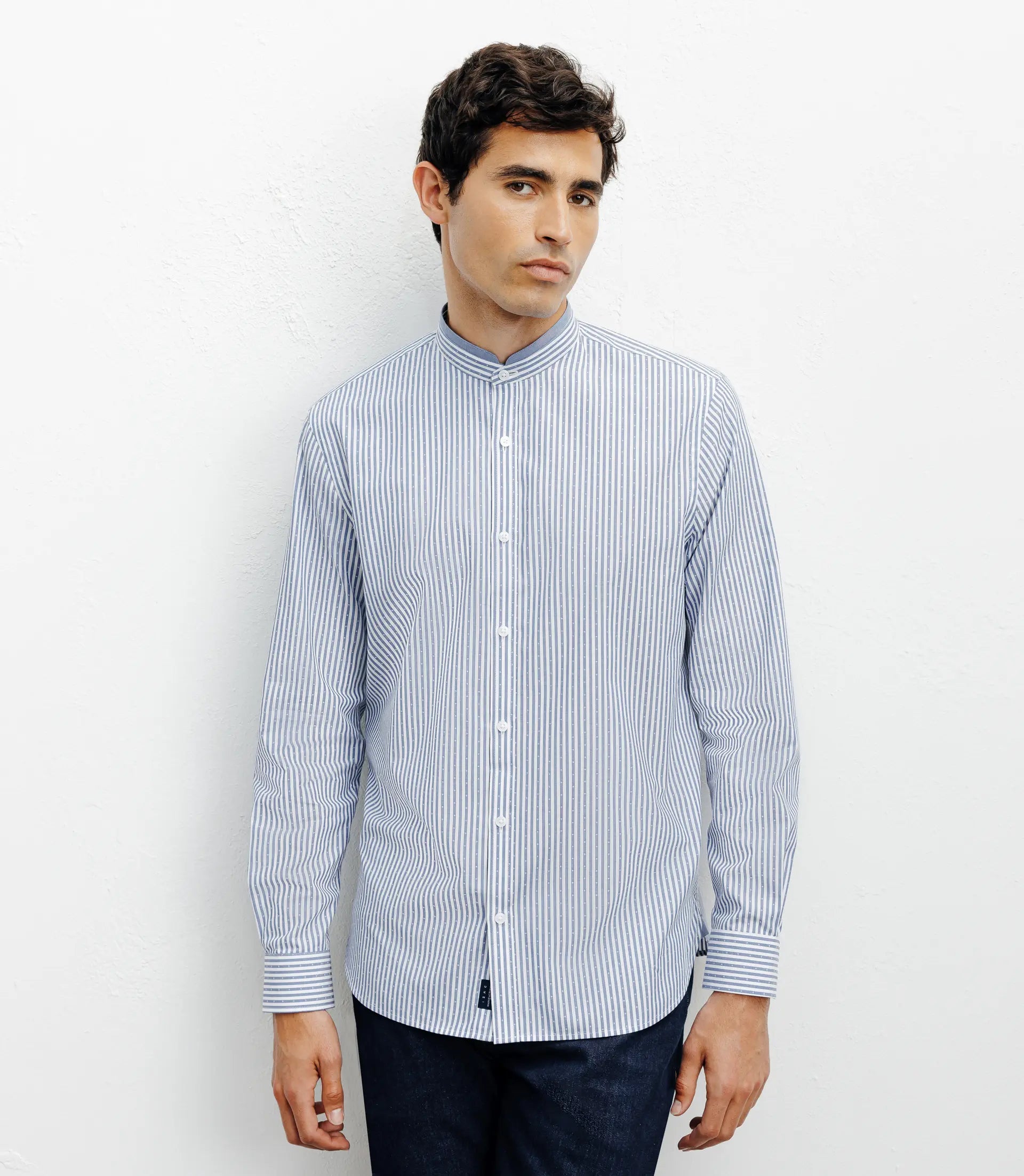 - Long-sleeved shirt with mao collar and contrasting inner cuffs