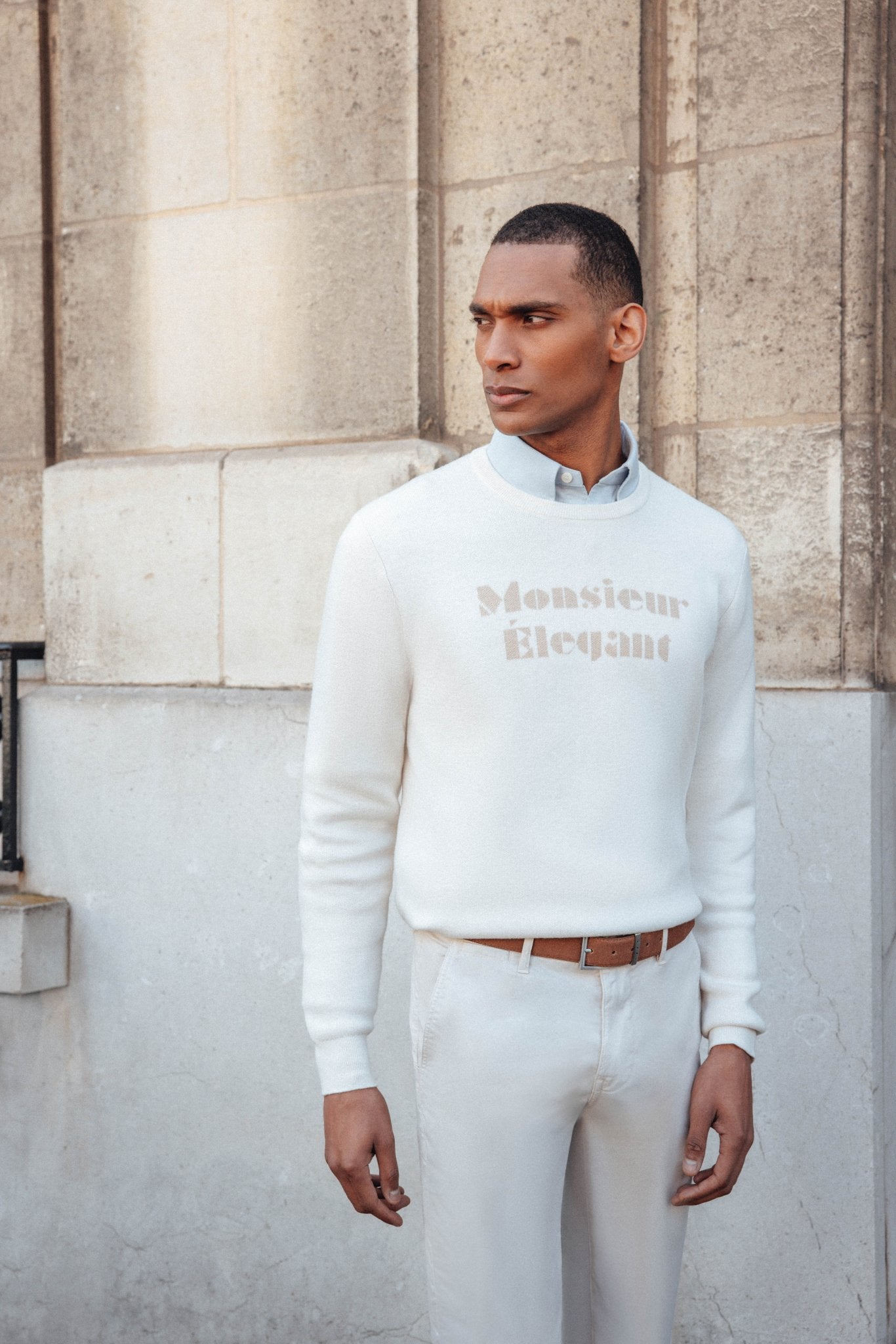 - Message "Elegant Monsieur" on the chest in Intarsia contrasting
