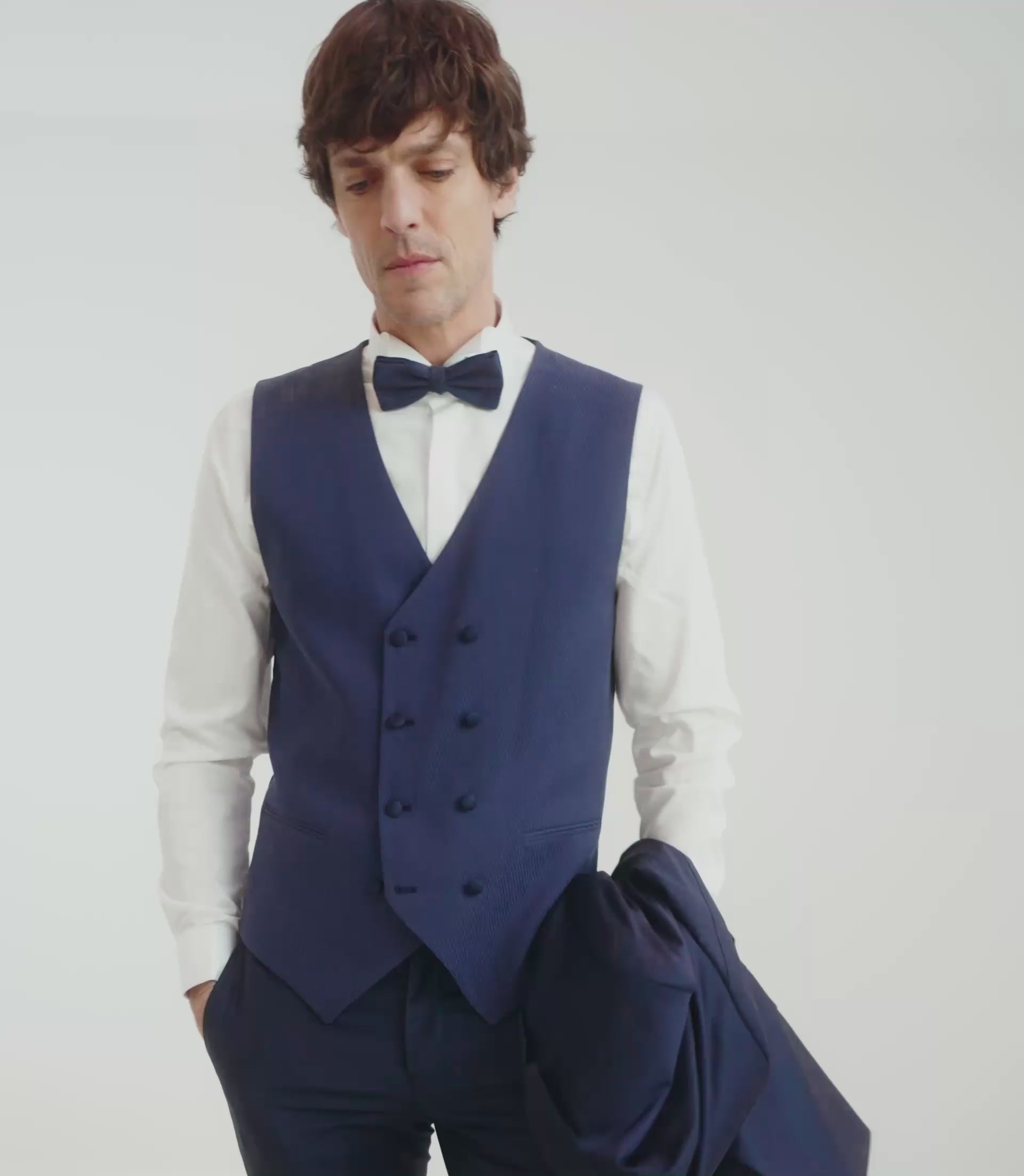 - Double-breasted waistcoat in tone-on-tone jacquard with the suit