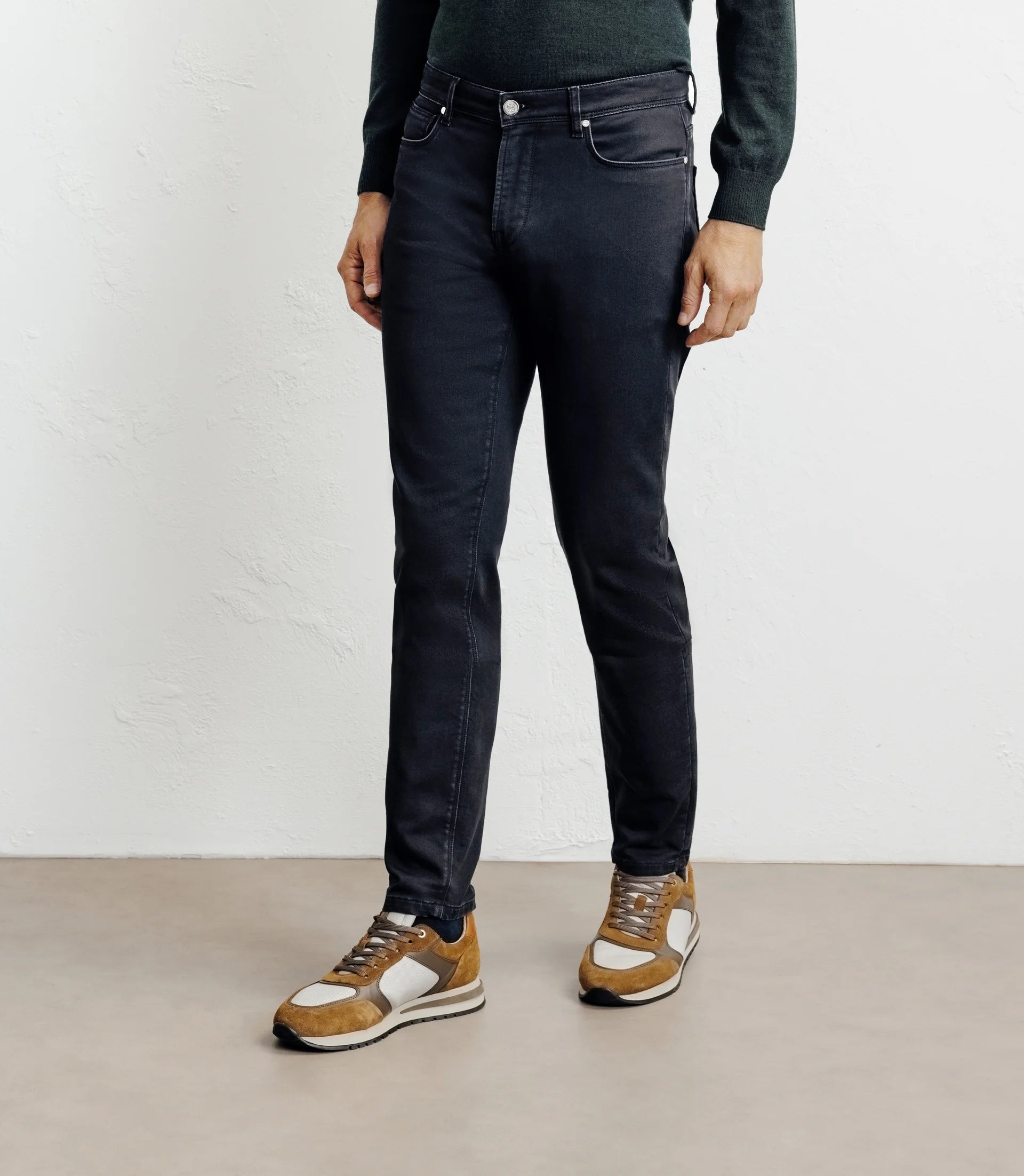 Navy / blue / grey / raw: 83% cotton 15% polyester 2% elastane