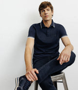 - Polo collar with contrasting jacquard