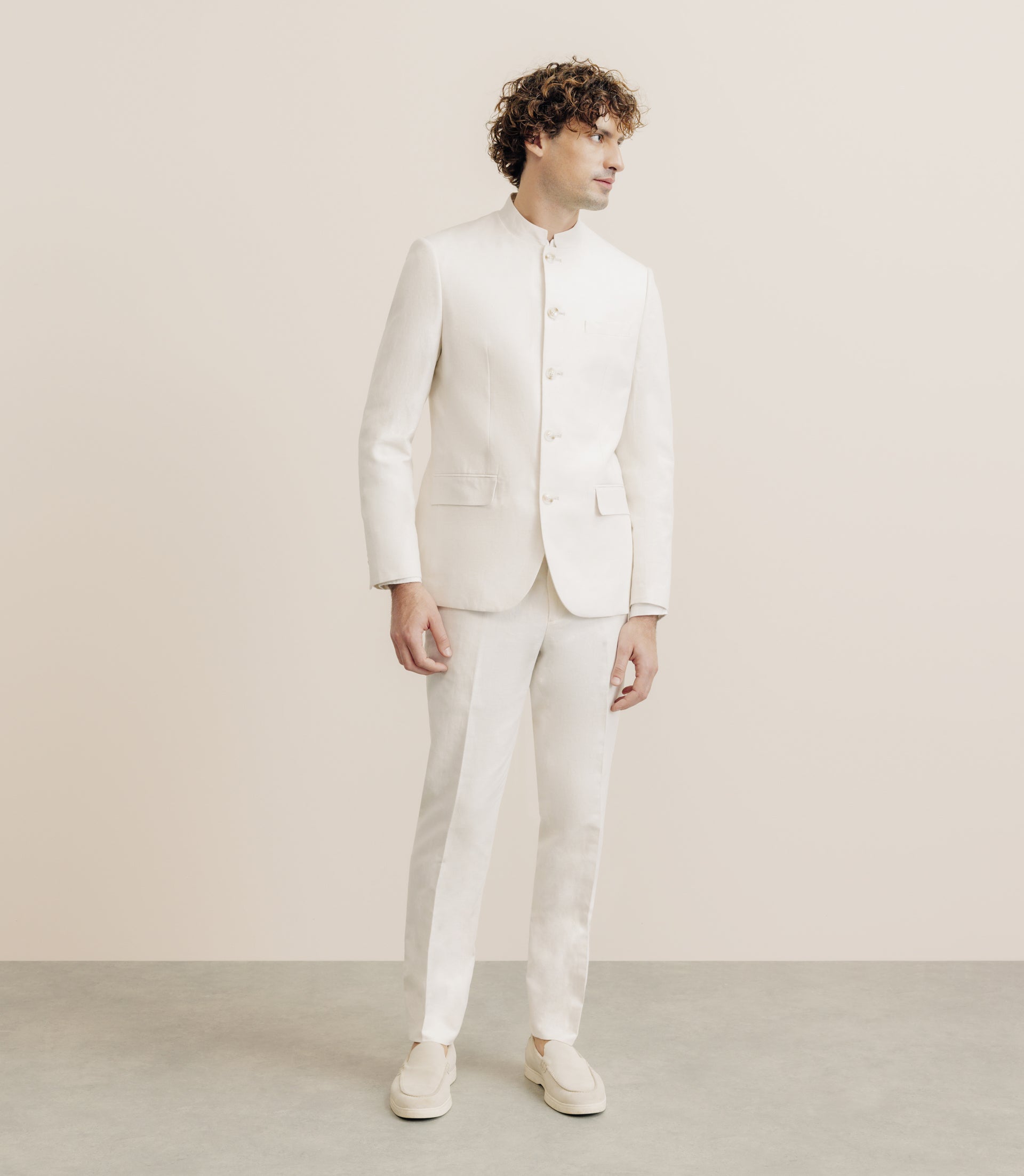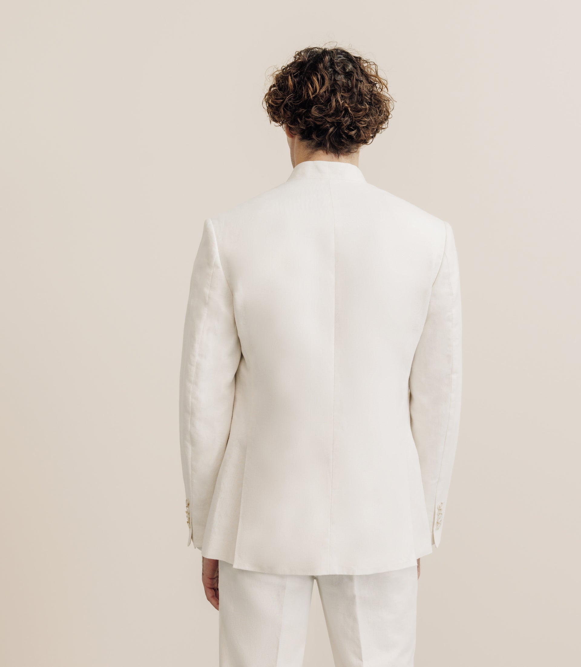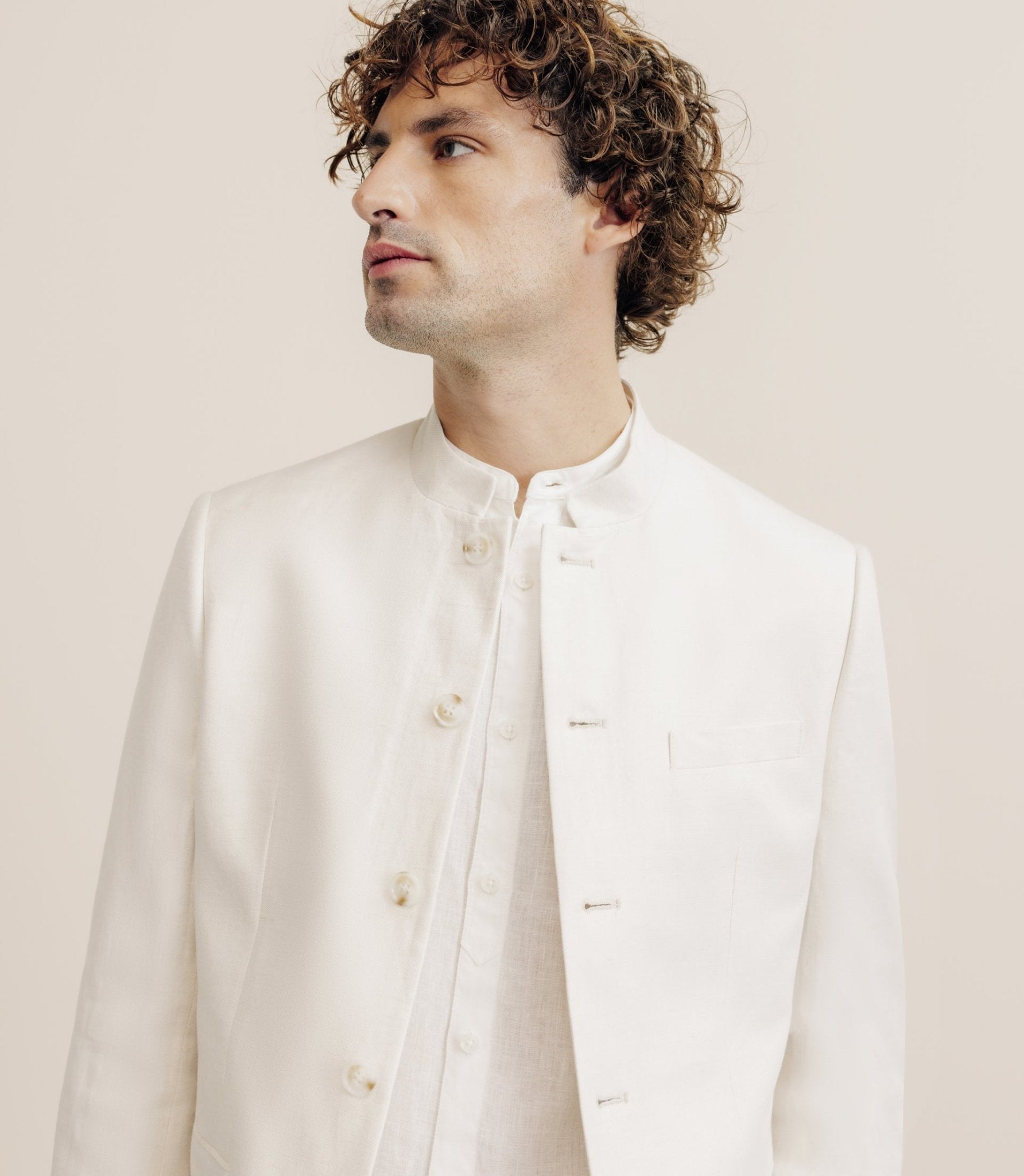 Ecru linen city jacket with mandarin collar