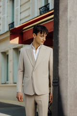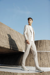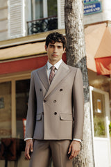 Nouveaux coloris, nouveaux modèles, le costume de cérémonie se réinvente. La pièce maîtresse de la collection : le costume croisé double col.