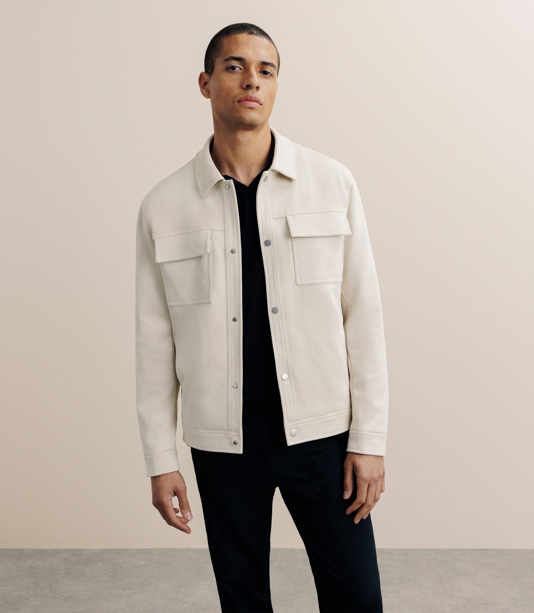 Accueil / Vêtements homme / Products / Blouson col chemise en suédine écru