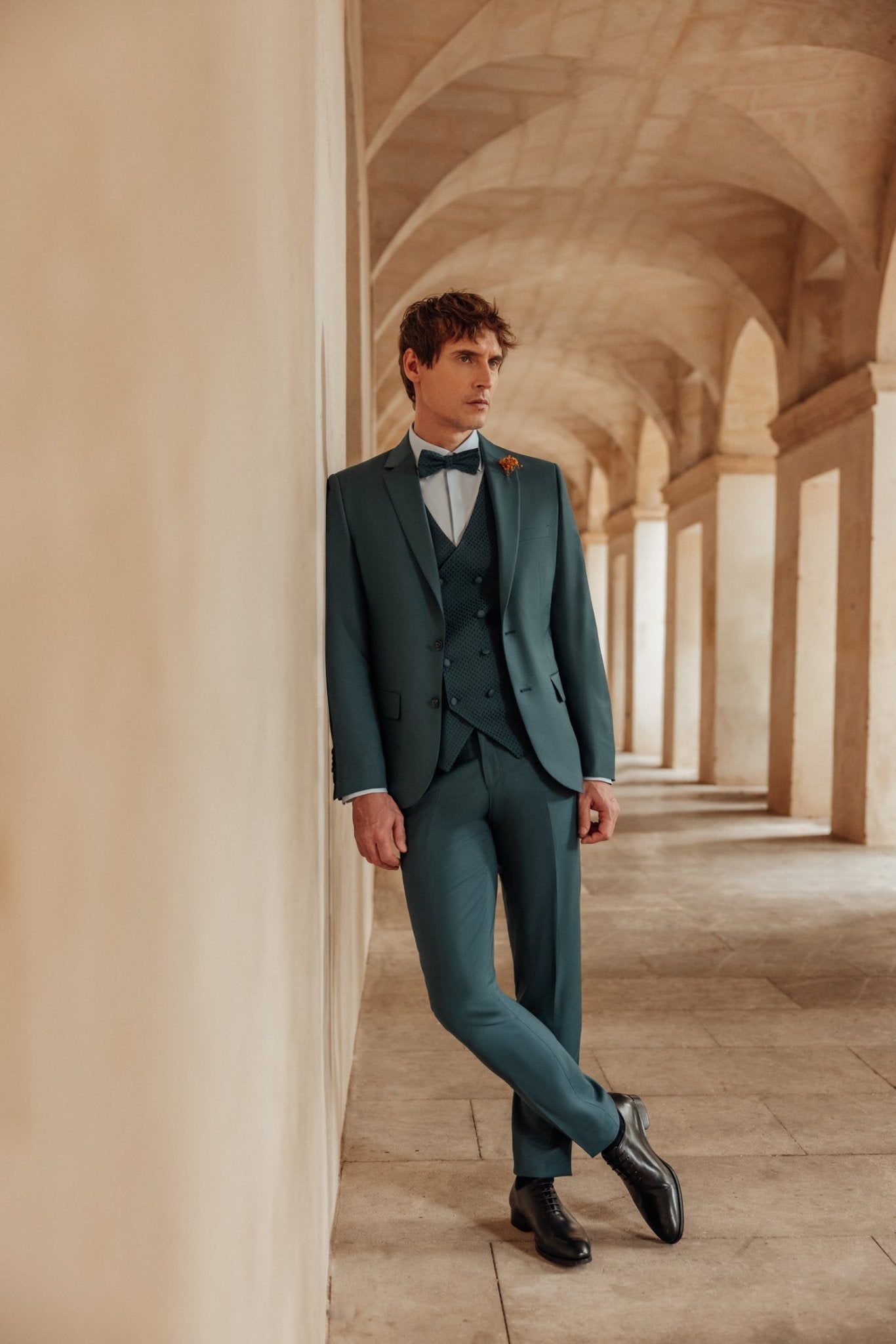 Costume 3 pièces cérémonie bleu-vert FAMOUS - IZAC