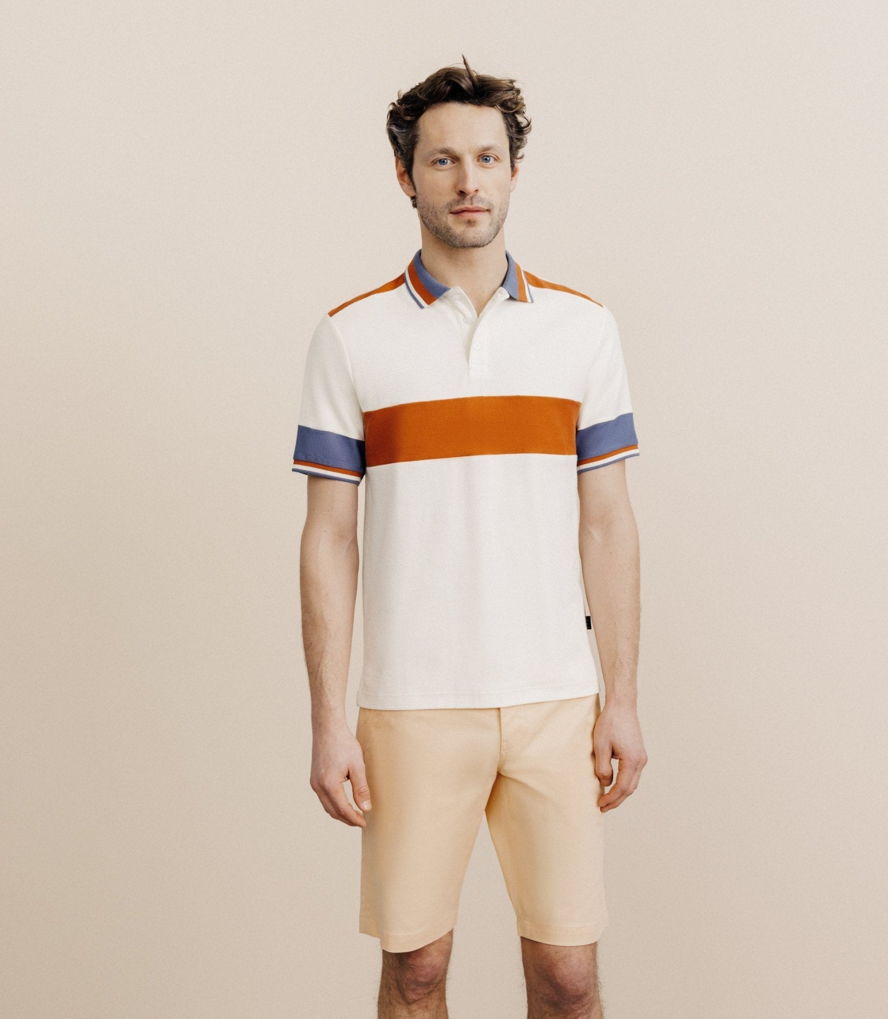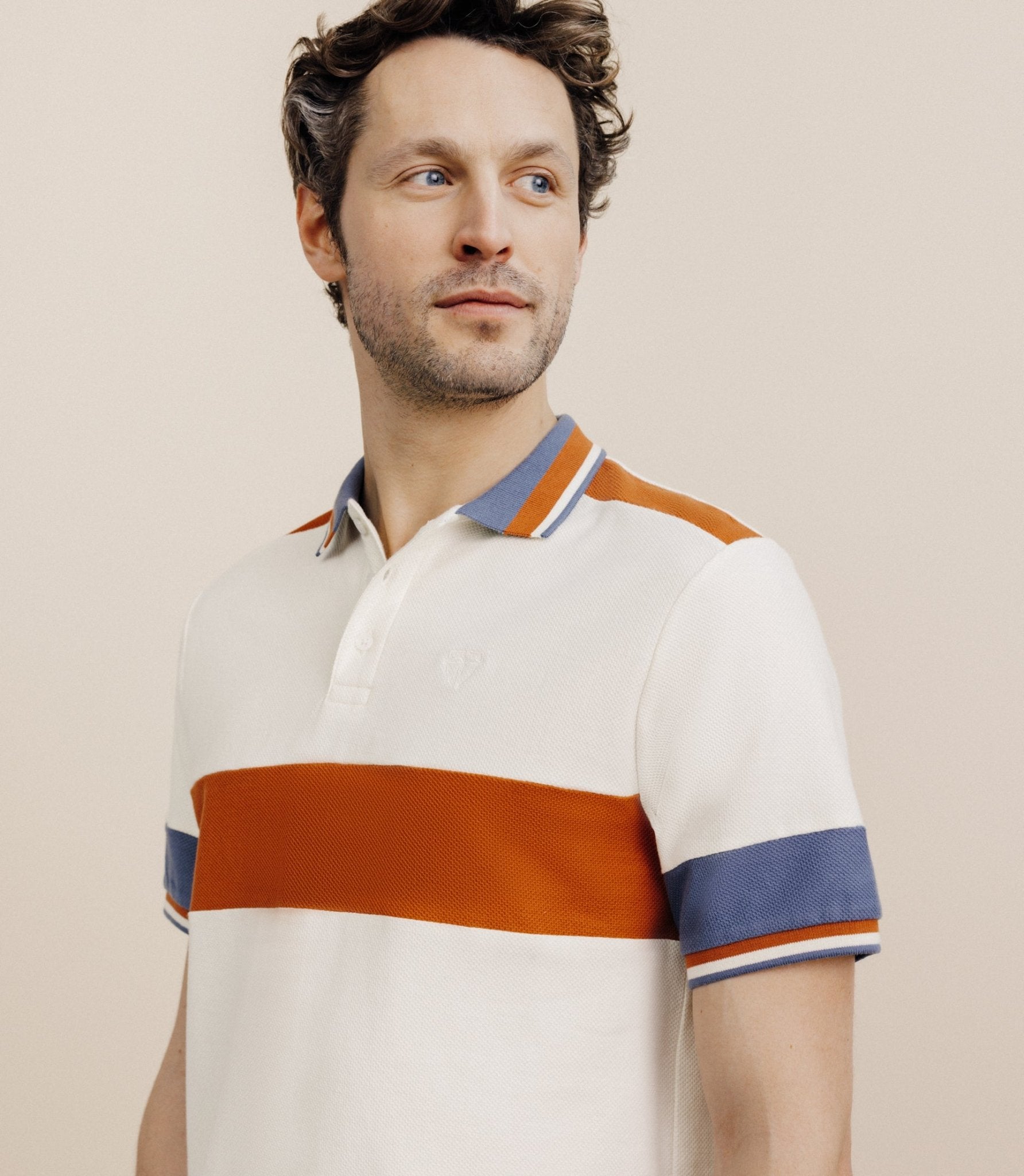 Polo boutonné à bandes contrastées pêche GELLY - IZAC