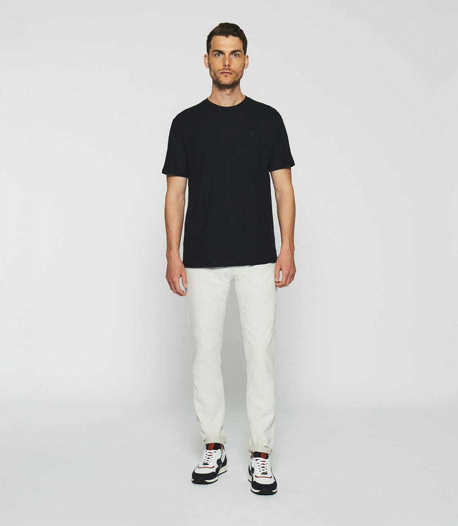 Le t-shirt GIOVANY est un modèle uni en maille texturée, qui lui donne un aspect légèrement reliefé. Il est doté d'une broderie ton sur ton du logo IZAC sur la poitrine. Ce t-shirt est confectionné en 100% coton mercerisé, une technique de traitement du coton qui lui confère un aspect plus brillant, plus doux et plus résistant que le coton classique.